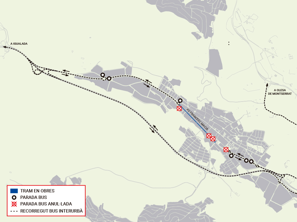 A partir del dia 3 de desembre tant el transport urbà com interurbà veuran alterades les seves parades en nucli urbà d’Esparreguera com a conseqüència de les obres de renovació del ferm a les avingudes de Francesc Macià i Francesc Marimon