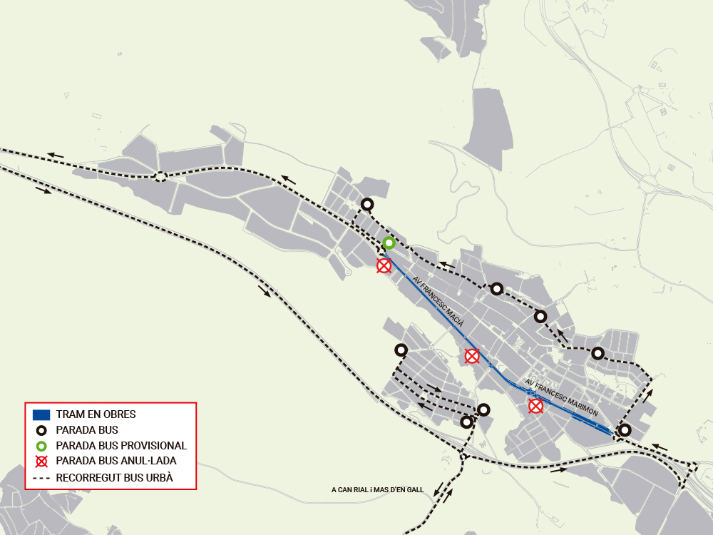 Les actuacions d’asfaltat a l’avinguda de Francesc Macià, entre la carretera de Piera i la rotonda nord (de les jirafes), comportaran que les parades del bus interurbà situades en aquest tram i també la parada de Francesc Marimon, 68, davant de la notaria, quedin anul·lades els dies 8 i 10 de desembre. Aquests dies, només funcionaran la resta de parades situades a l'avinguda de Francesc Marimon. Pel que fa al bus urbà, les afectacions es mantindran mentre durin les obres i comportaran l'anul·lació de les dues parades de l’avinguda de Francesc Macià i la parada de Francesc Marimon. Alternativament i de manera provisional, la parada de la rotonda nord quedarà substituïda per una nova parada al carrer Bruc que es mantindrà operativa fins l'acabament dels treballs d'asfaltat.