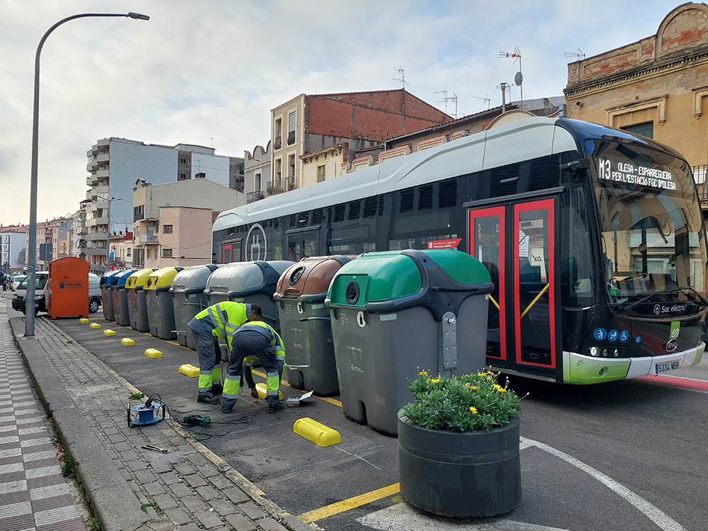 Aquesta setmana s'han començat a col·locar elements d'ancoratge per fixar els contenidors dins de les seves àrees delimitades. Aquests treballs és previst que es portin a terme durant les properes dues setmanes i, mentre durin les actuacions, serà necessari moure els contenidors endavant, ocupant més espai de la calçada de l'habitual, per tal que els operaris puguin treballar correctament en la col·locació dels anclatges. Per aquest motiu és possible que, de manera puntual, els contenidors no es mantinguin dins de la seva àrea delimitada i que el pas per la calçada sigui més estret de l'habitual.